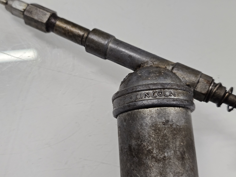 #2047 Vanha iso mittakannu, öljykannu, Lincoln öljyprässi, HD kuvut ym.