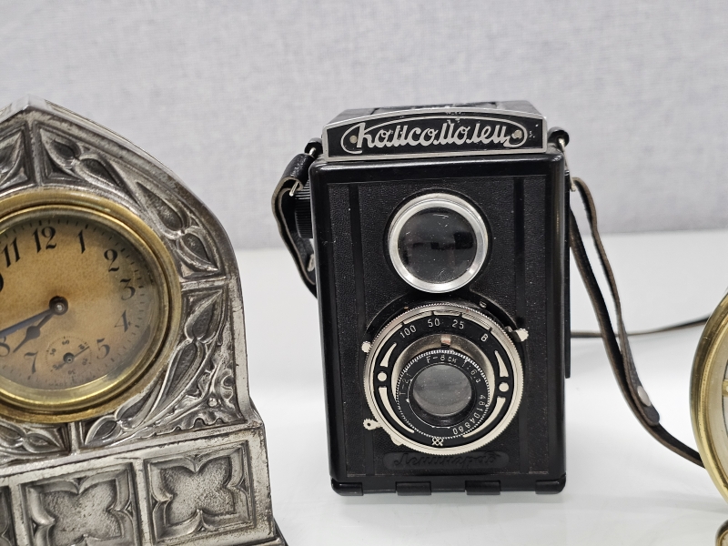 #2046 4kpl kelloja + 2kpl vanhoja kameroita