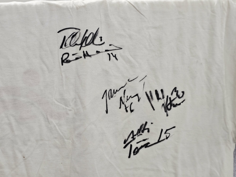 #1837 World cup of hockey paita pelaajien nimikirjoituksilla: Mm. Raimo Helminen, Antti Törmänen, Janne Niinimaa ym.