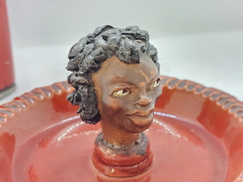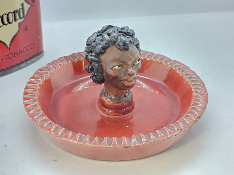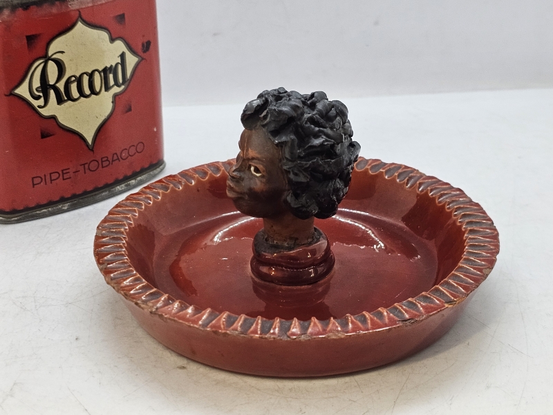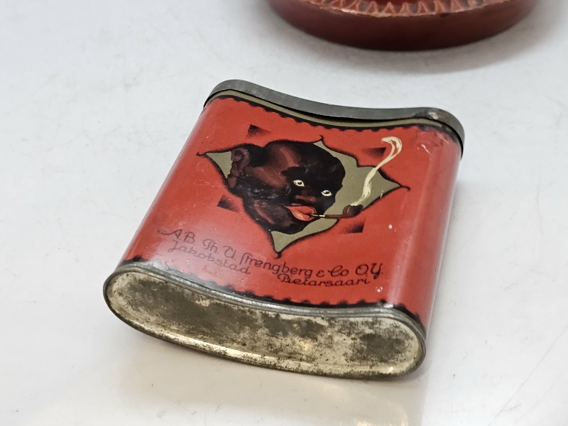 #2088 - Vanha peltinen Strengberg Record tupakkarasia + keraaminen kotimainen tuhka-astia