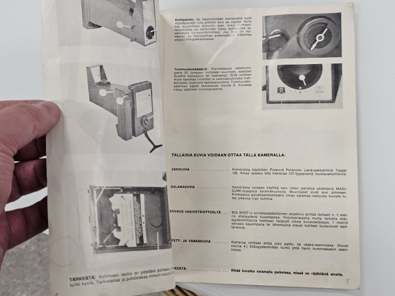#2473 Big Shot polaroid-kamera + suomenkielinen ohjevihko