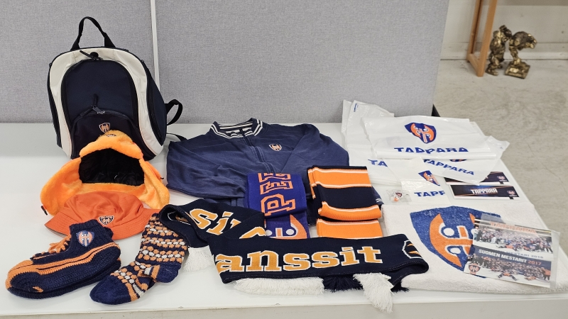#1838 Iso erä Tappara fanitavaraa: Mm. huiveja, reppu, villasukkia ym.