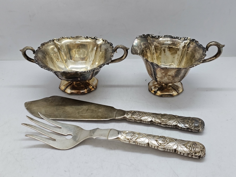 #877 Hopeinen sokerikko ja kermakko + kakkuottimet