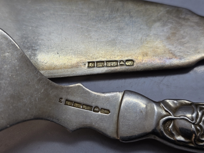 Myös kakkuottimien terät hopeaa. Paino 141g + 118g = 259g. Ei kaiverruksia