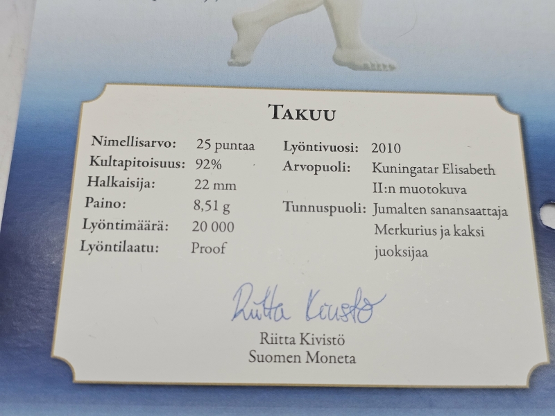 #866 - Kultakolikko: Lontoo 2012 olympialaiset, Jumalten sanansaattaaja Mercurius, 8,51g