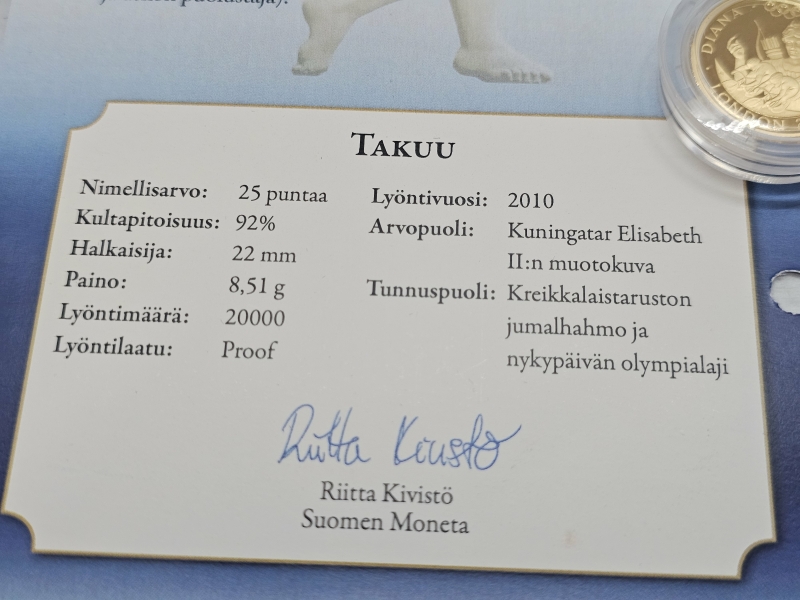 #867 Kultakolikko: Lontoo 2012 olympialaiset - Jumalatar Diana, 8,51g