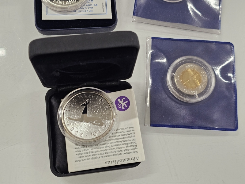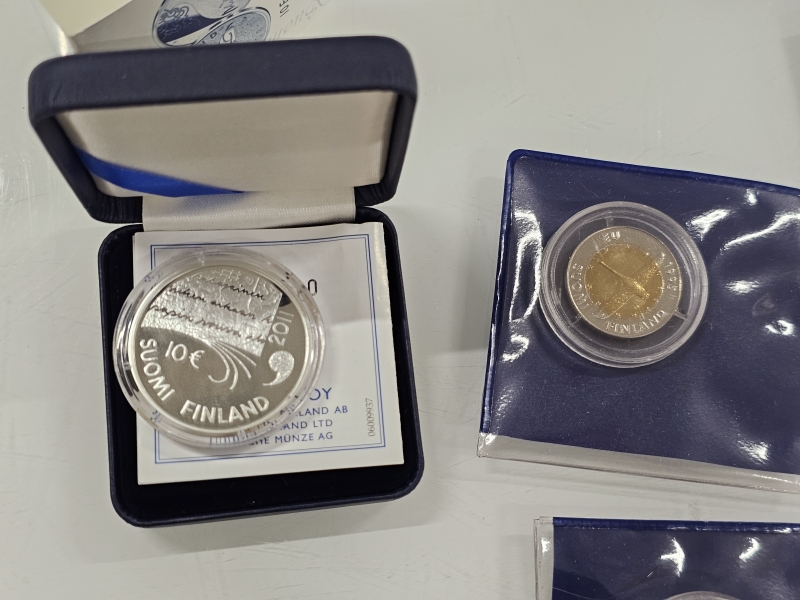 #870 Erä rahoja: Mm. hopeisia juhlarahoja