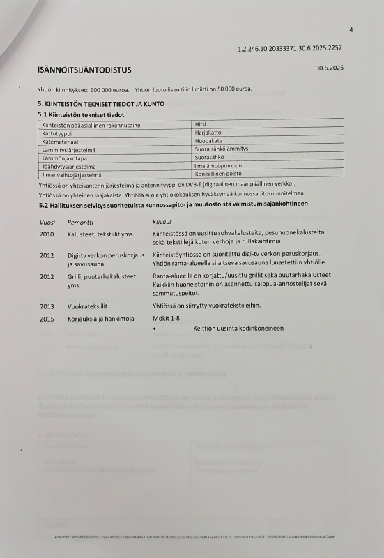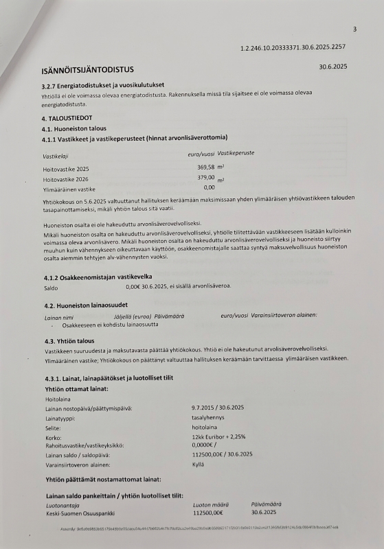 HUOM.! Kuvista poistettu nimiä tietoturvasyistä, kohteen papereissa nimet mukana.