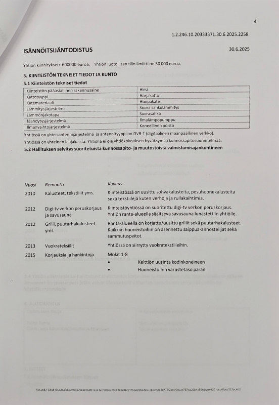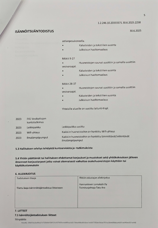 HUOM.! Kuvista poistettu nimiä tietoturvasyistä, kohteen papereissa nimet mukana.