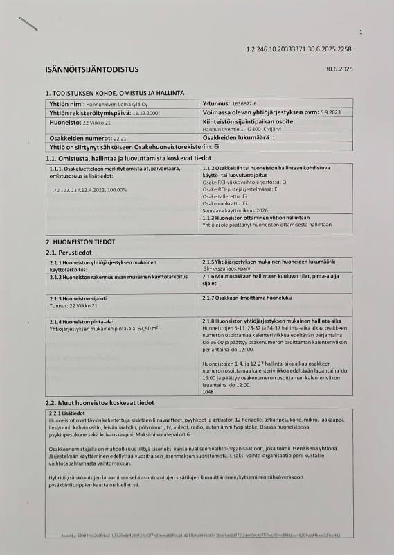 Yhtiövastike 379e/vuosi. Tarvittavat paperit nähtävillä toimipisteellämme Turengissa. Lisätietoja Hannunkivestä: https://www.holidayclubresorts.com/fi/loma-asunnot/hannunkivi/