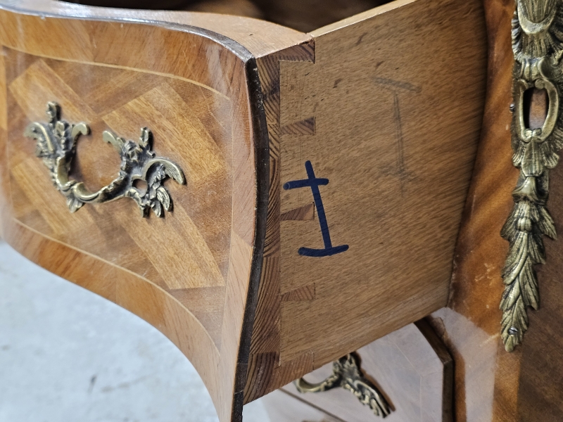 Viiluissa hieman puutteita. L: 100cm, s: 55cm, k: 81cm