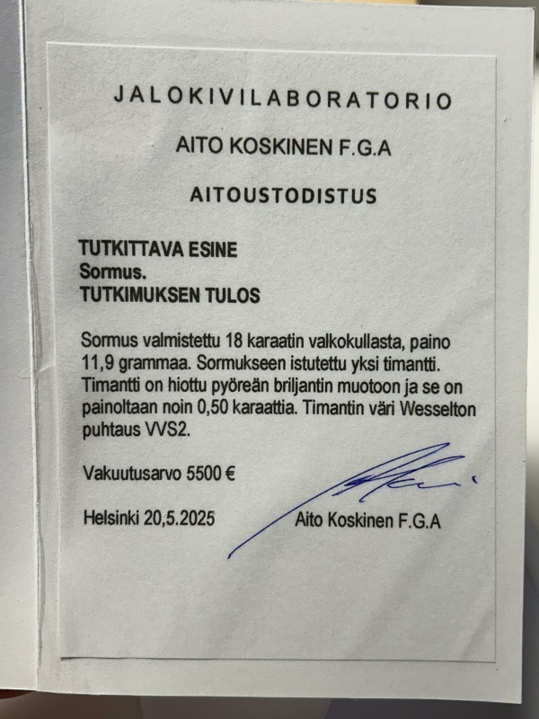 Bruttopaino 11,9g. Koko 18. Mukana aitoustodistus.