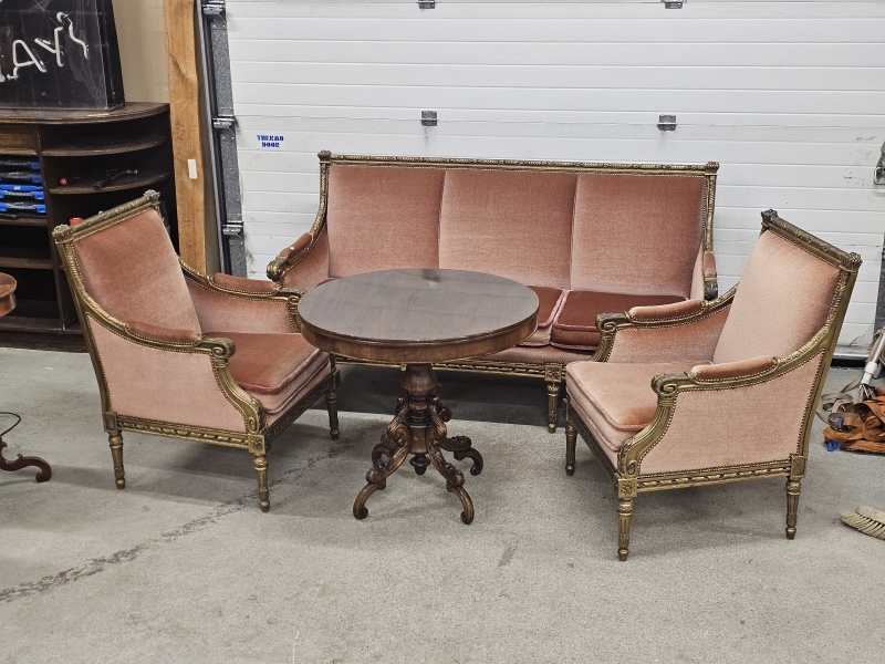 #1877 Kustavilainen 3-osainen sohvakalusto + sohvapöytä