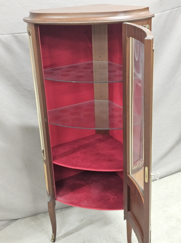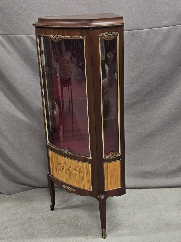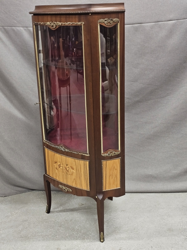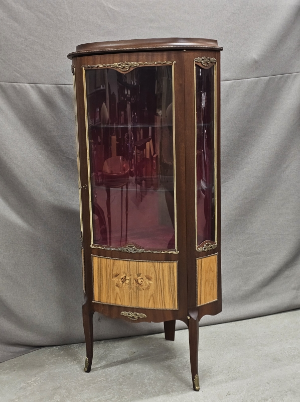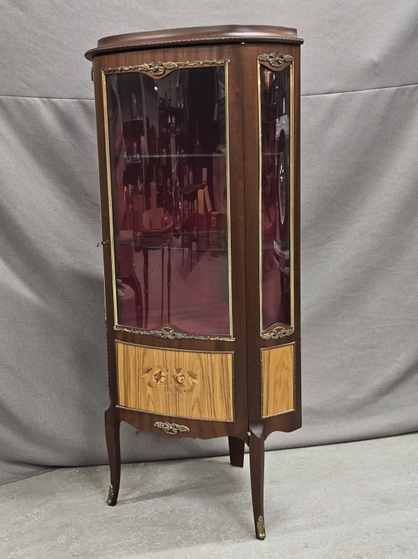 #1882 - Kulmakaappi intarsiaupotteilla ja messinkilyötteillä