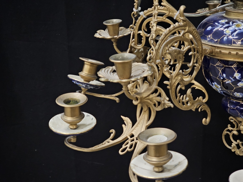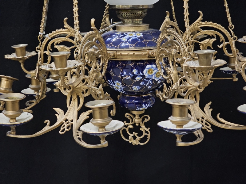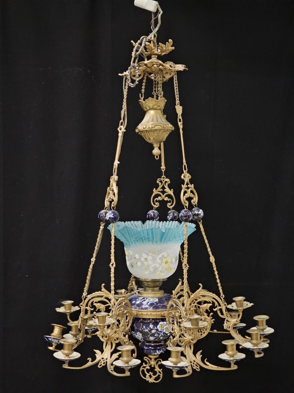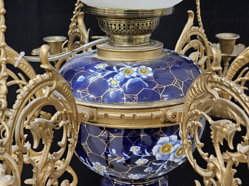 #1887 Sähköistetty öljyvalaisin kattoon, posliiniosilla