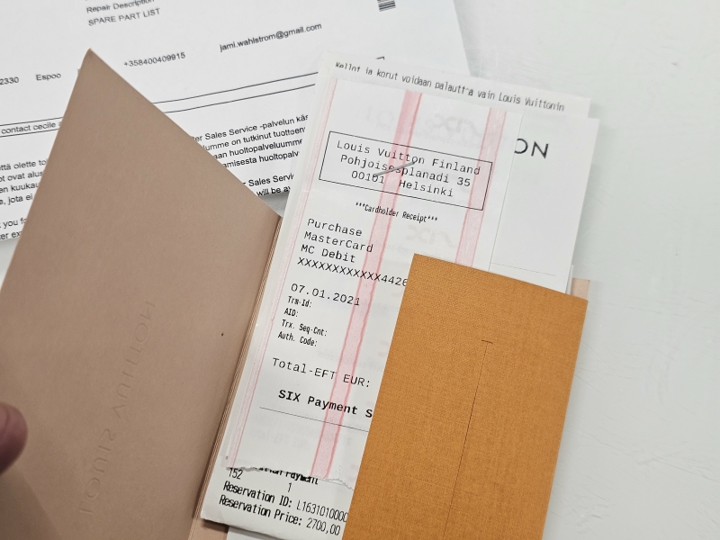 Mukana mm. dustbag, laatikko, lukko avaimella, aitoustodistus, alkuperäiset kuitit ym. Leveys 55cm. Värjäytymää, käytetty LV-huollossa jossa sitä ei ole saatu pois. Hieman tunkkainen haju