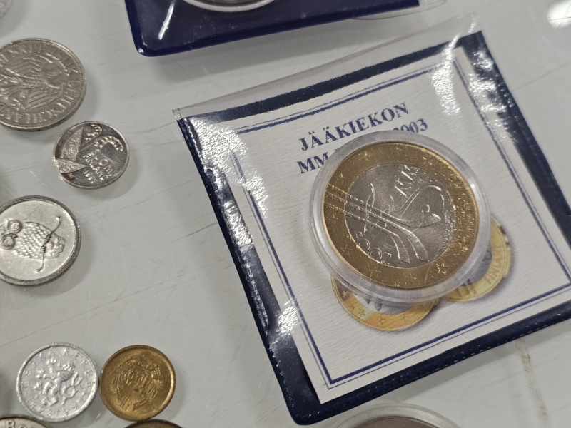 #890 - Erä kolikoita ja juhlarahoja: MM2003, MM2005 ym.