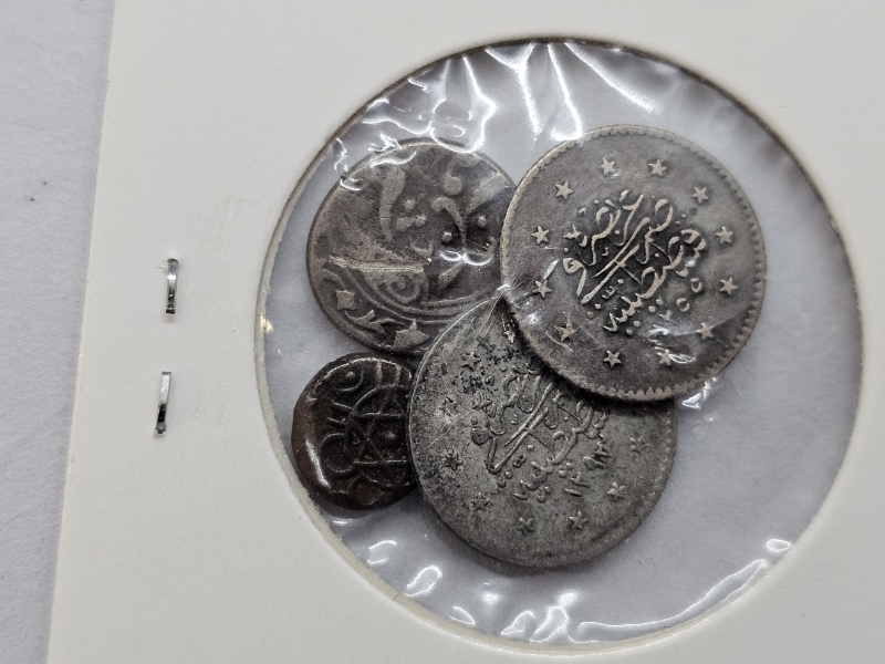 #892 4kpl hopeisia pieniä itämaisia kolikoita