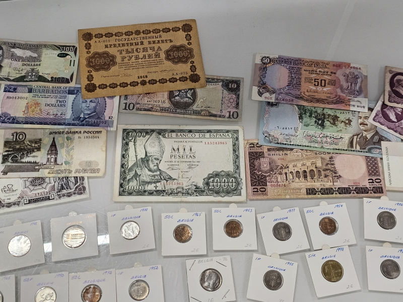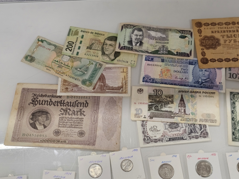 #895 - Iso erä vanhoja kolikoita ja seteleitä eri maista