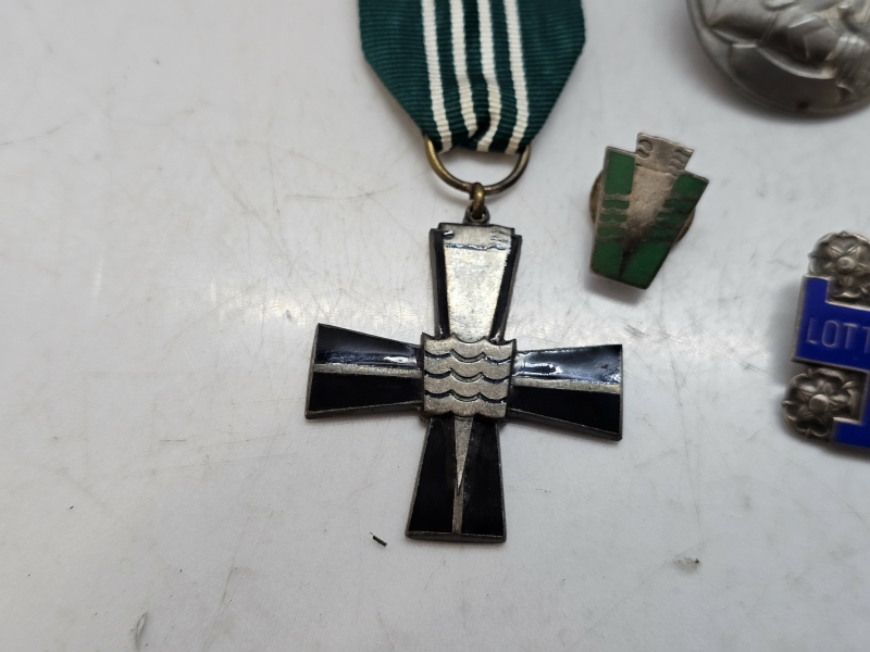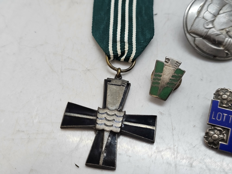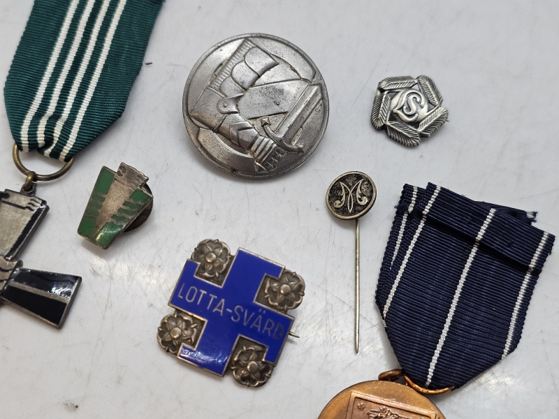 #1642 - 11. Divisioonan muistoristi + asevelimerkki & muita merkkejä mm. Lotta Svärd