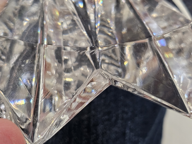Korjaushiontoja, yhdessä sakarassa naarmuja ja yhdessä sakarassa vika. Sign. Halk: 26cm
