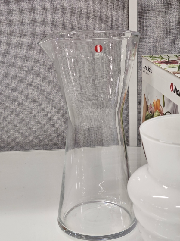 #150 3kpl lasiesineitä: Mm. Franck Kartio -kaadin, Aino Aalto maljakko ym.