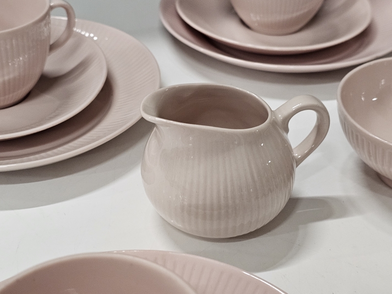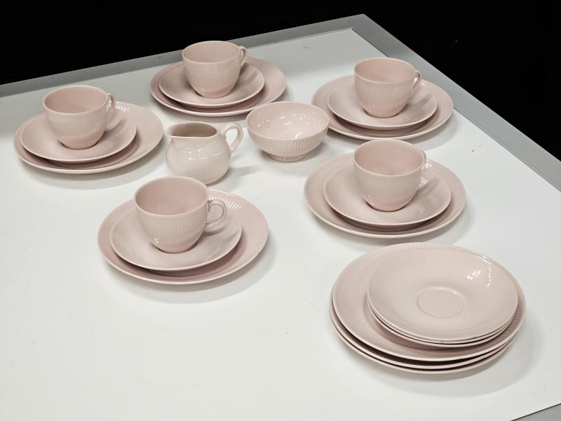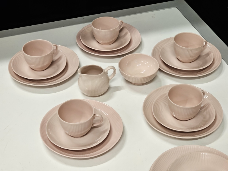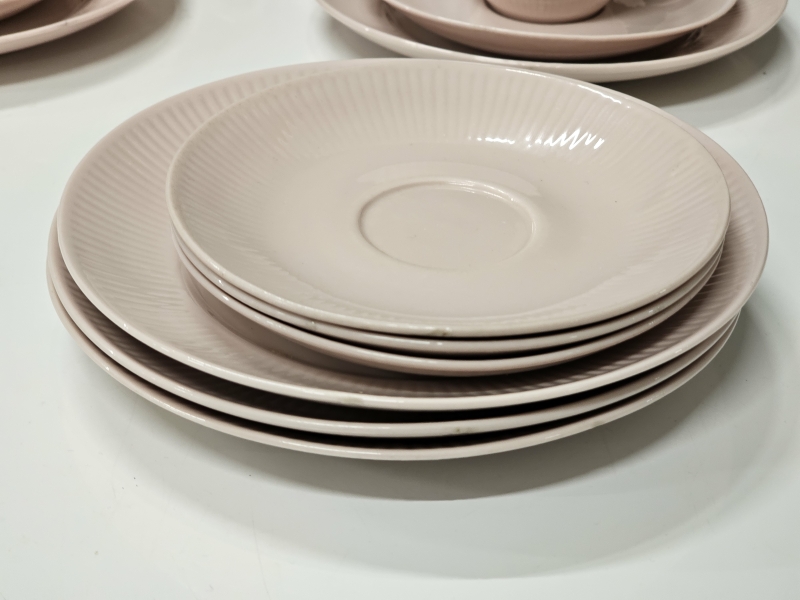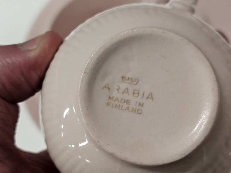 Kahdessa tassissa ja lautasessa kolhut. Kupin h: 7,5cm