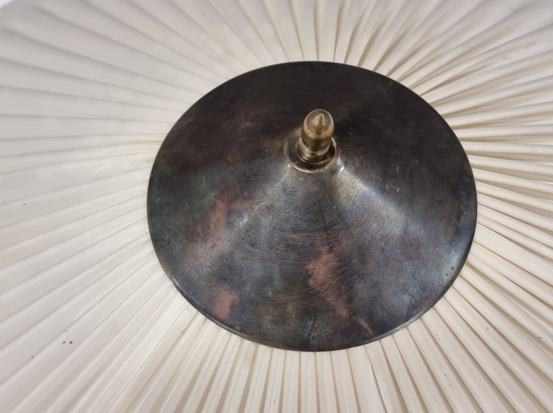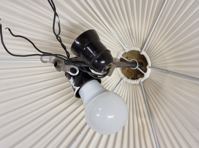 Varjostimessa haalistumaa. Halkaisija 60cm. Kattokiinnike taipunut