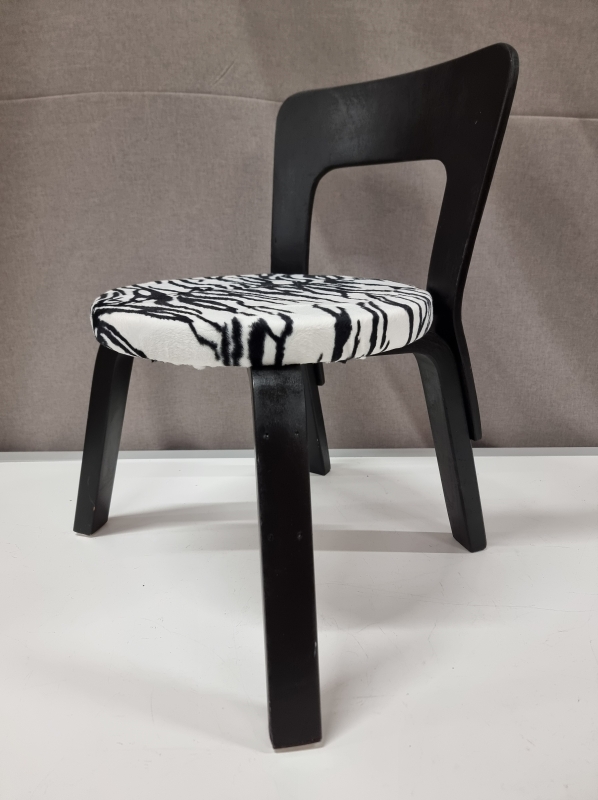Korkeus 57 cm, halkaisija 36 cm. Uudempi verhoilu ja maalaus
