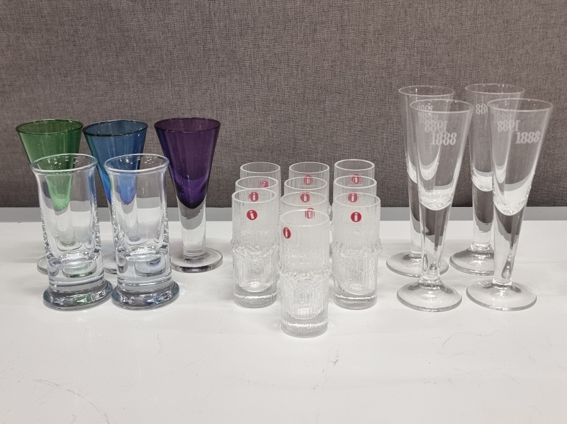 #294 Erä snapsilaseja. Mm. P. Paunila, Wirkkala Niva