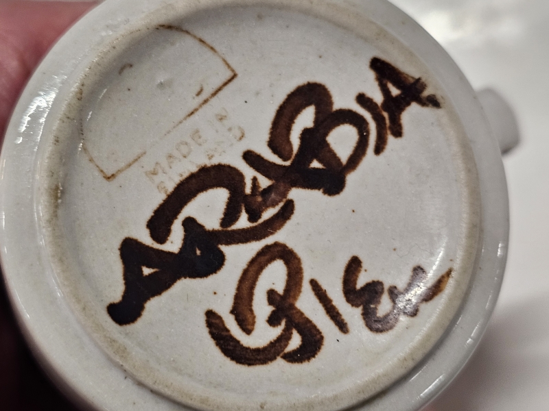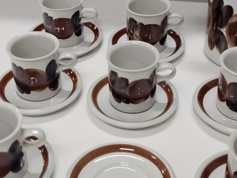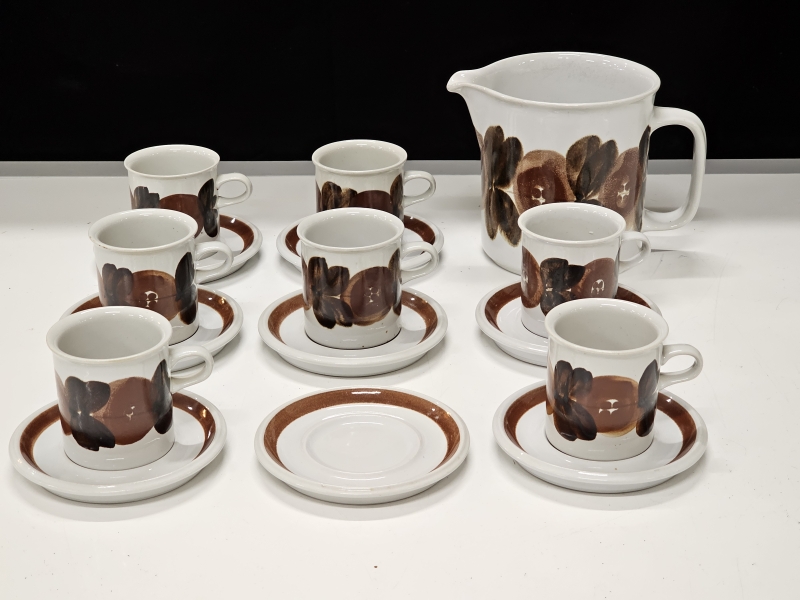 Kannun sisäpinnassa värjäytymää, muuten hyväkuntoiset. Kupin h: 7cm