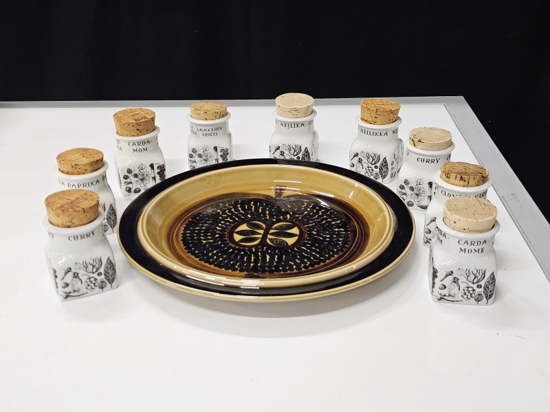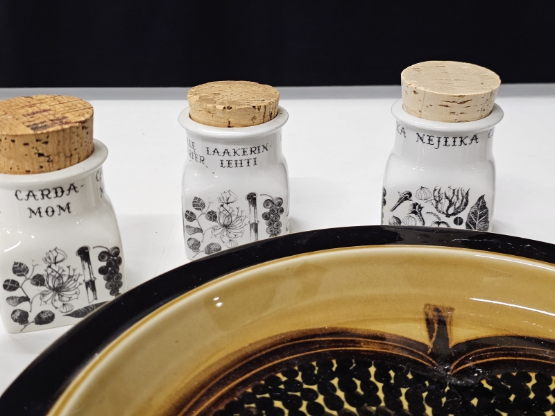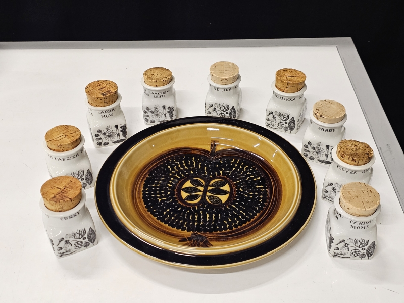 #698 9kpl Arabia maustepurkkeja + 1kpl GOG Fructus -lautanen