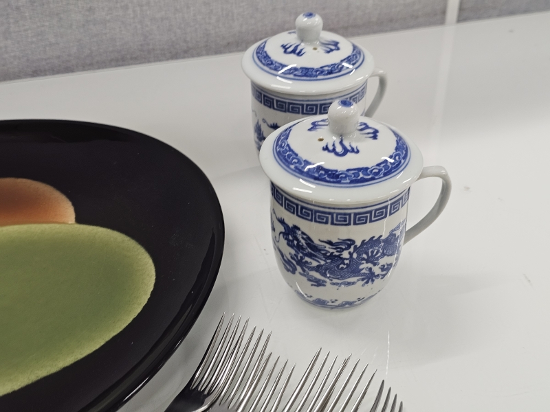 #704 Erä tavaraa: Mm. Arabia Heljä Liukko-Sundström Paletti, itämaiset kupit + aterimia