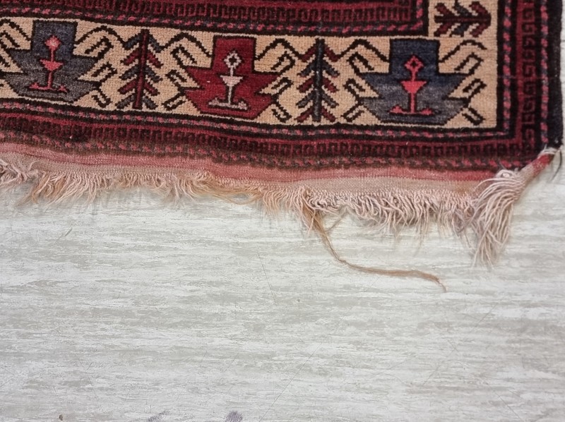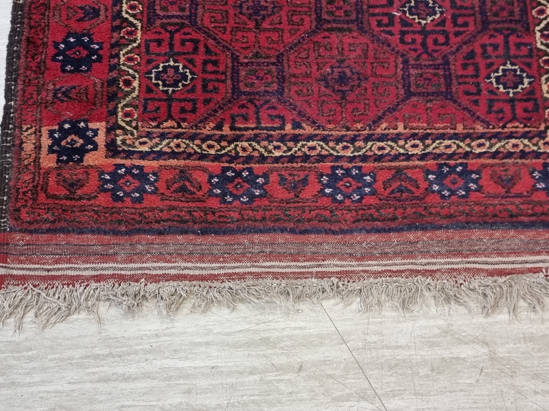 Likaa, kulumaa, kieroja ja hapsuissa vikaa. 84cm x 163cm ja 96cm x 172cm.