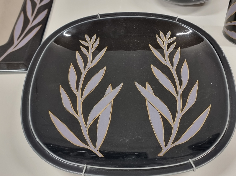 #718 5kpl Pauli Partanen keramiiikkaesineitä, mm. kello ja peili