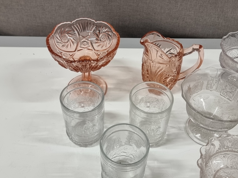 #352 - Erä kotimaista lasia. Mm. Vaakuna - sokerikko ja 3kpl Lönnrot suurmieslaseja