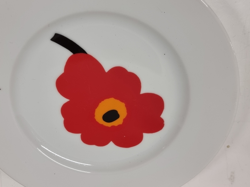 #885 Arabia astiastoja, mm. Sointu + 4kpl Marimekko lautasia