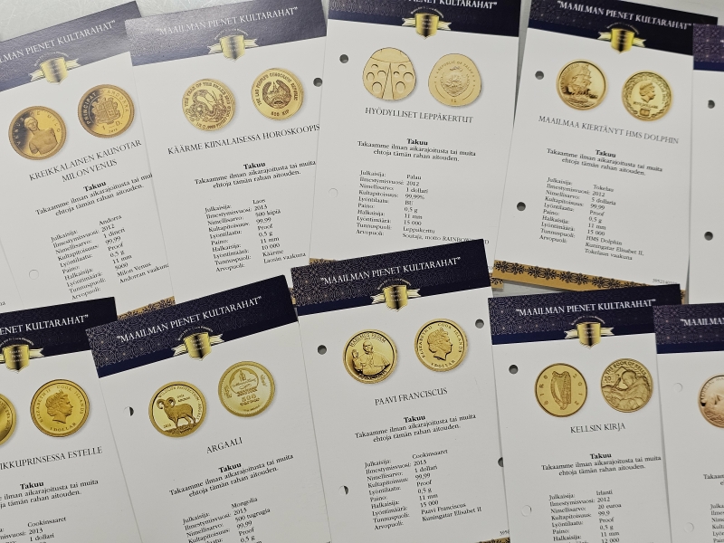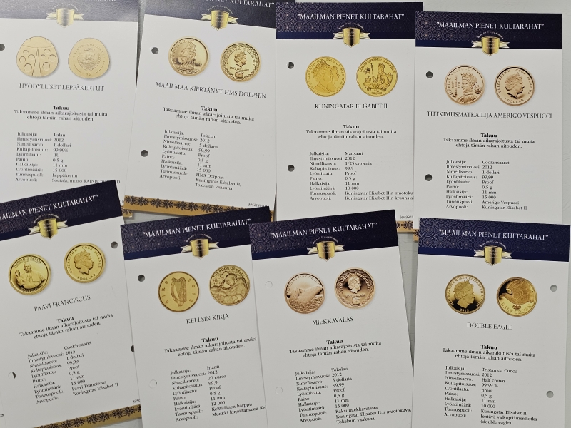 #1083 16kpl Maailman pienet kultarahat -sarjan kultakolikkoja, 8g