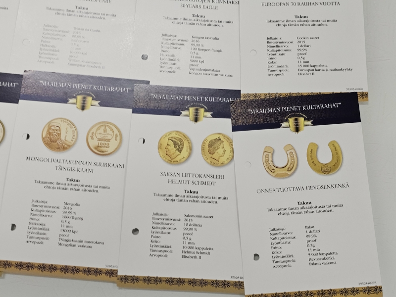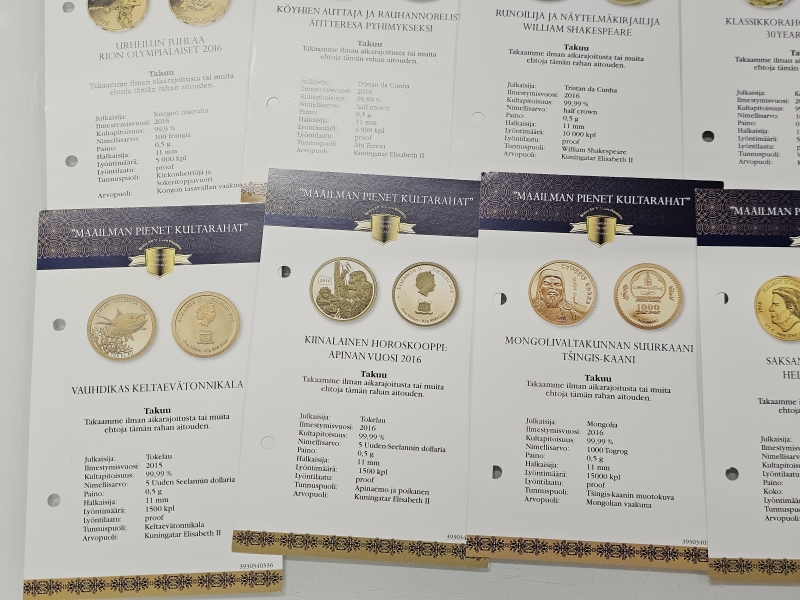 #1086 16kpl Maailman pienet kultarahat -sarjan kultakolikkoja, 8g