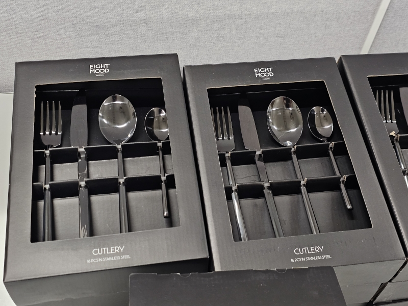 #2502 17 pakettia käyttämättömiä Eight Mood metallisia ruokailuvälineitä