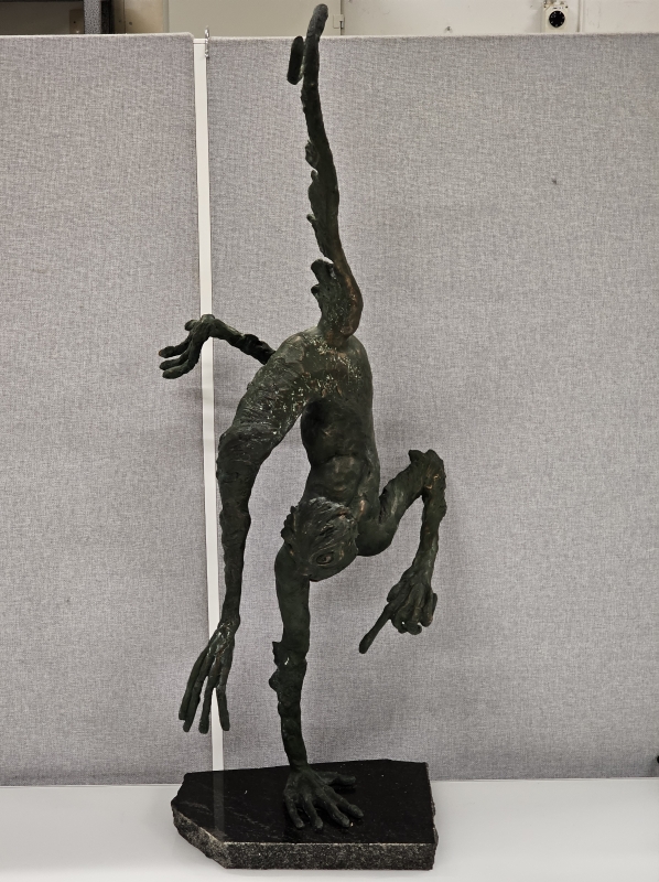 #1902 - Iso signeerattu pronssiveistos kivijalustalla