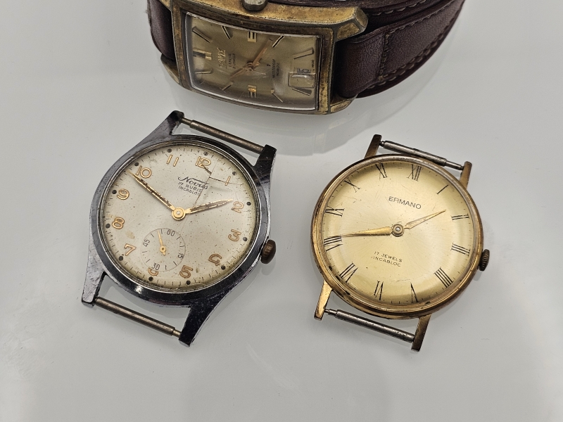 #1098 3kpl vintage rannekelloja: Ermano / Camy / Novus
