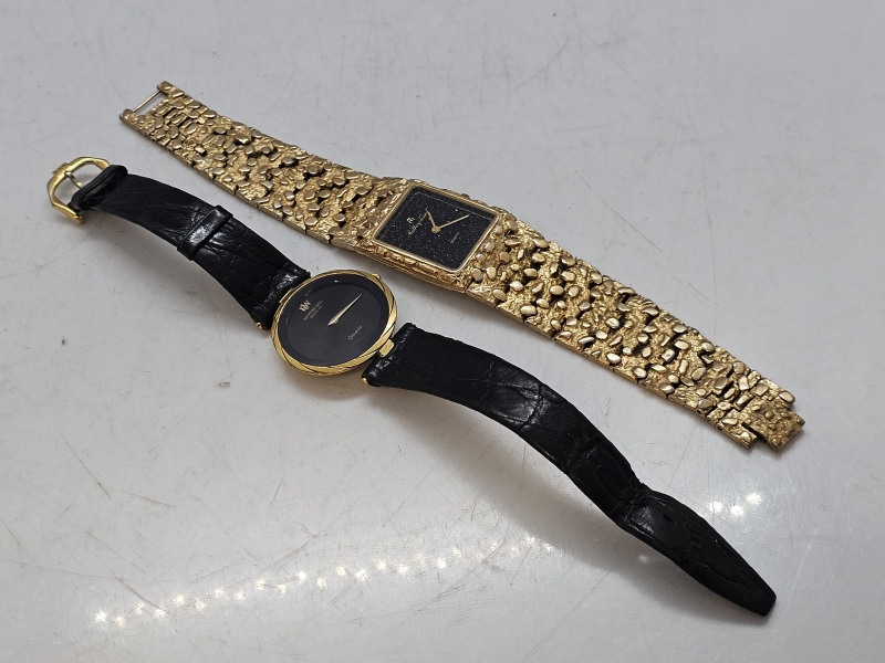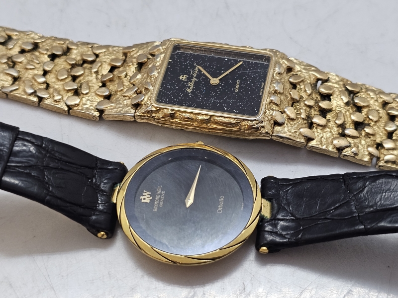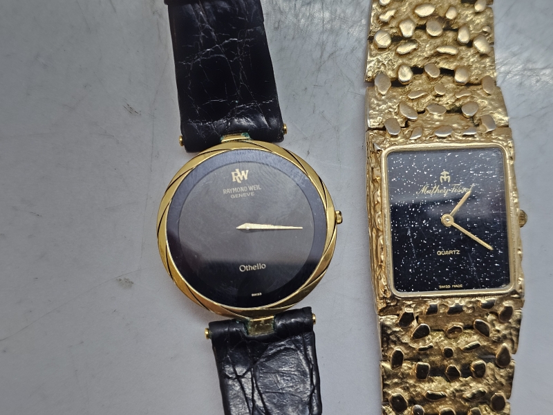 #1105 2kpl rannekelloja: Mathey-Tissot Quartz / Raymond Weil Othello 18k kultauksella