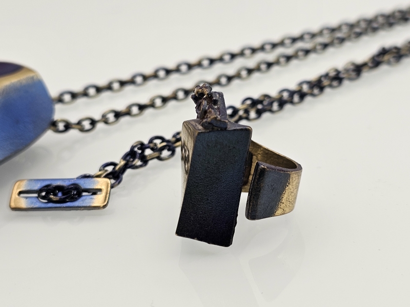 #1109 Harvinainen Lapponia Björn Weckström tulipronssi kaulakoru ja sormus, "International Arms Inc."
