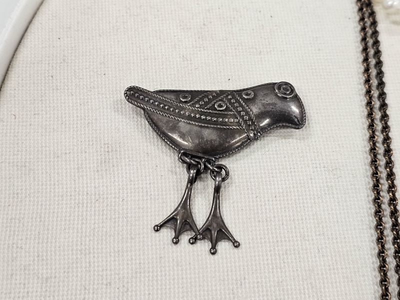#1116 - Erä koruja: Mm. Hopeinen Kalevala koru Hattulan lintu, Aarikka ym.