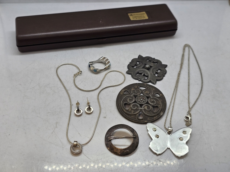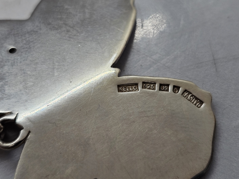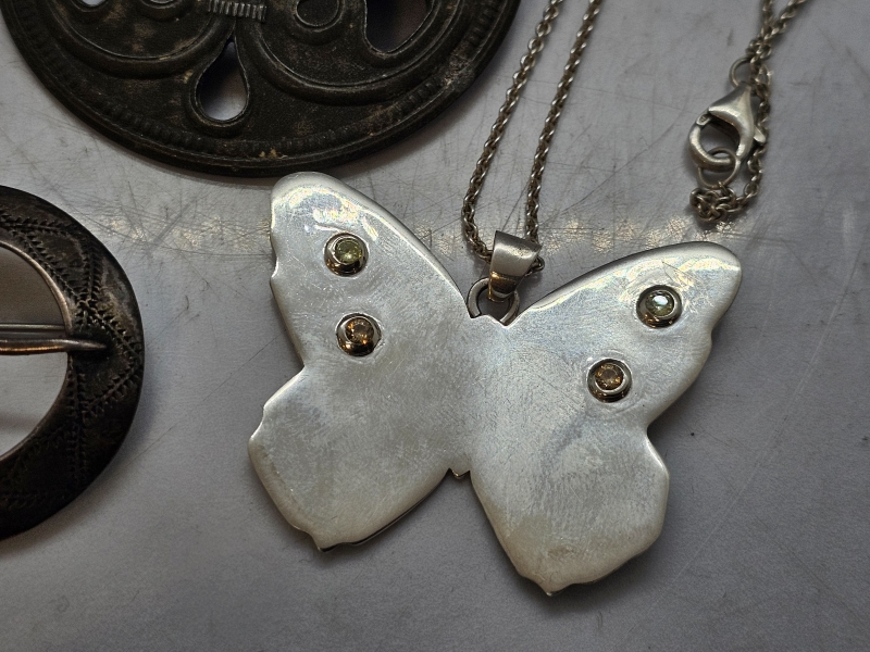 #1121 Erä koruja: Mm. Hopeinen Kelloseppäkoulu perhosriipus