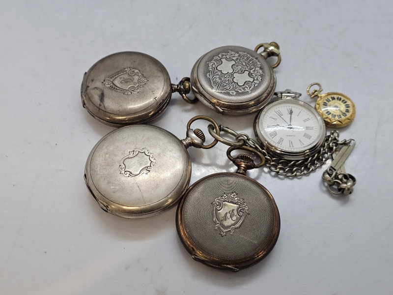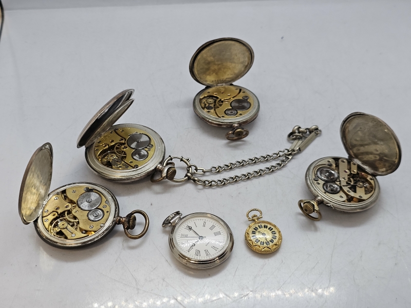 #1122 - 6kpl taskukelloja joista neljä hopeista