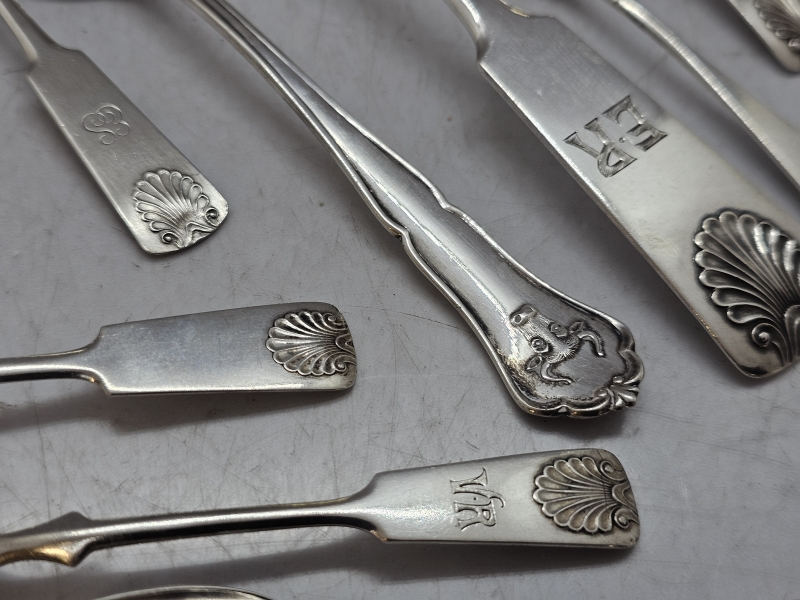 #1130 - Erä hopeisia Musla -ottimia, joista yksi suojeluskuntalusikka