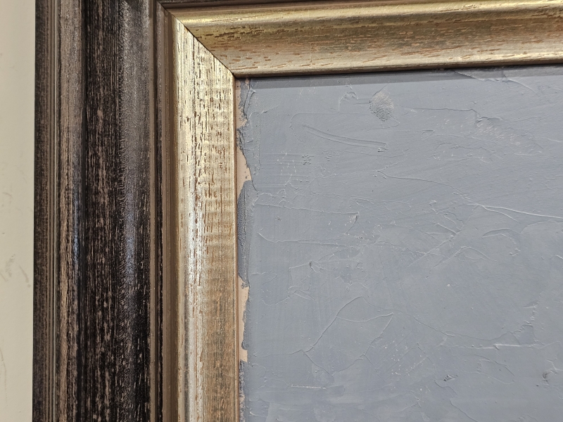 Yläkulmasta hieman maalipuutetta. Kehyksineen 104cm x 85cm