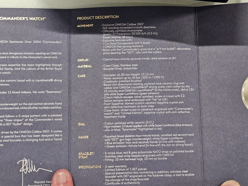 #1133 Rannekello: Omega Seamaster Diver James Bond Limited Edition Commander's watch